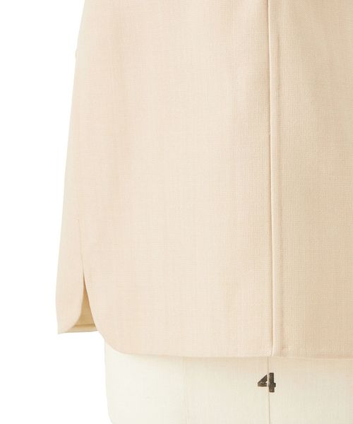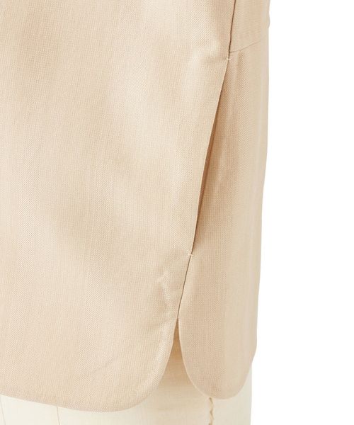 肩幅を細く、深めのVネックですっきりと仕上げ、サイドベントとバックベントでジレの要素をミニマムに取り入れています。