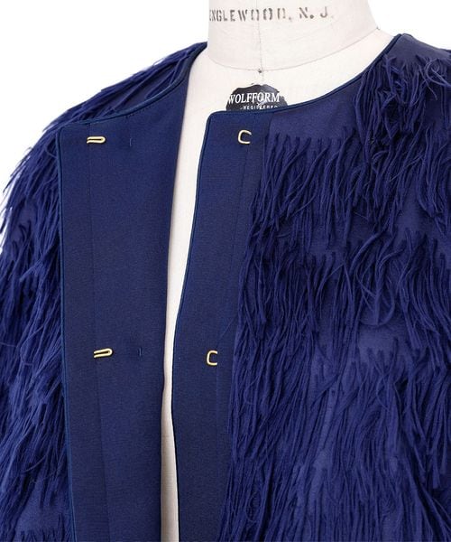 FALL1 フリンジジャカードノーカラージャケット