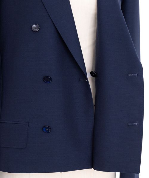 大きめなピークドラペルがクラシカルな印象を持つダブルブレストのテーラードジャケット。