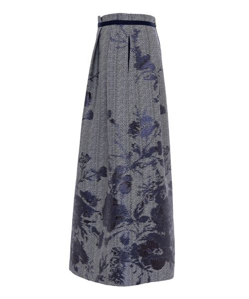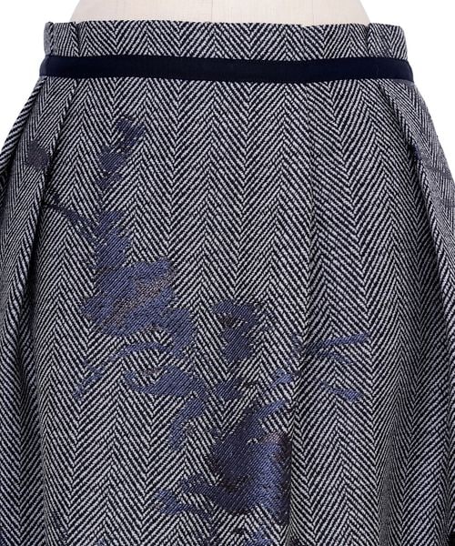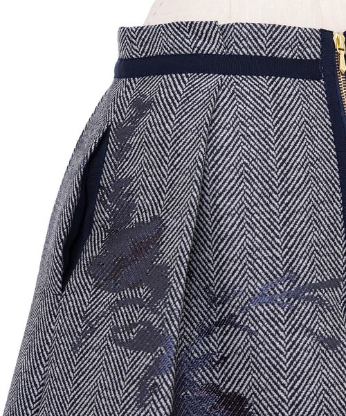 アーティスティックなフラワージャカード素材が目を惹くタックスカート