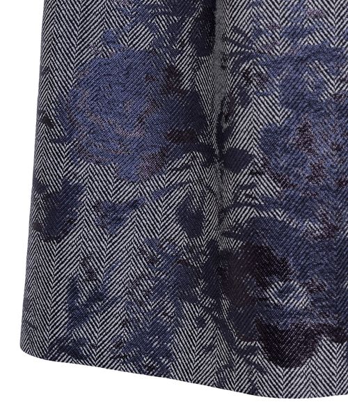 ヘリンボーン柄にラメ糸の陰影がついたビッグフラワーモチーフが特徴なジャカード素材を使用。