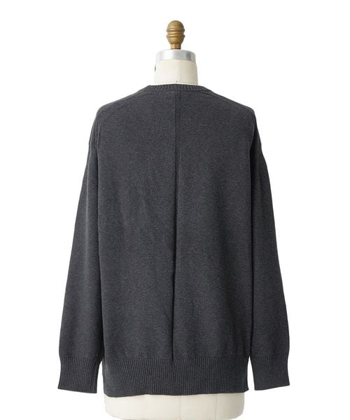 バックコクーンシルエットがポイントのベーシックなクルーネックニット。