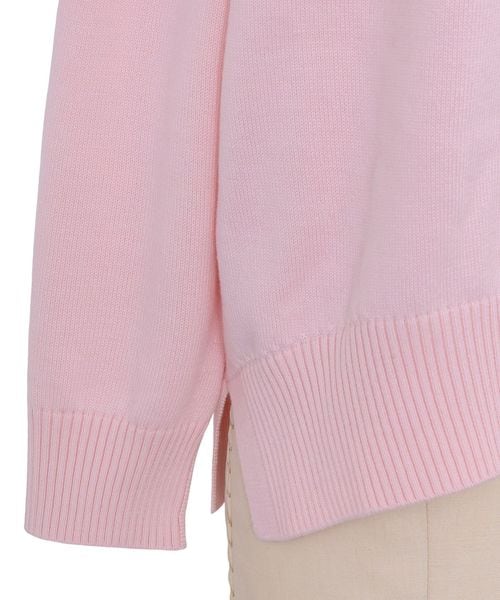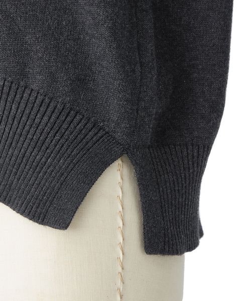 着丈は、バックのセンターに入れた編み地の切り替えラインとサイドのスリットが抜け感をプラスします。
