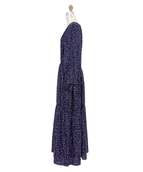 花びらのようなモチーフプリントが優しく揺れるワンピース