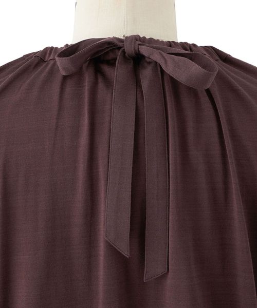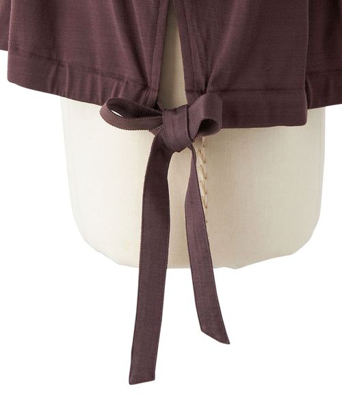 袖口は上品なリブ刺繍の仕立て、ネック後ろとサイドに配したリボンがアクセントになります。