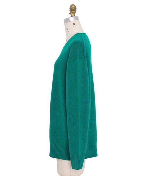 上品な雰囲気にみせる、ほどよく詰まったクルーネックで仕上げたプルオーバーニット。