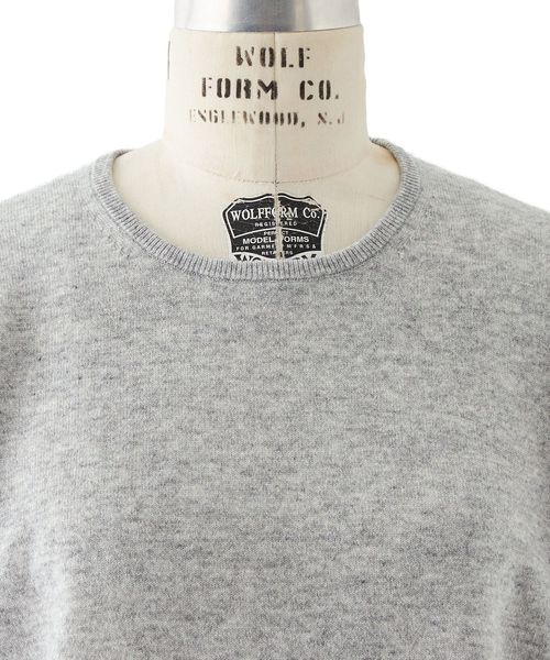 ベーシックなハイゲージのクルーネックデザインにさりげないアクセントをプラスしたニット。
