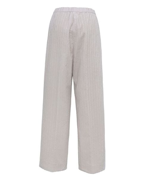 ウェストにはゴムとドローリボンの入ったイージーな着心地、サイドのファスナー仕様でヒップ周りをすっきりと見せるパンツです。