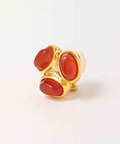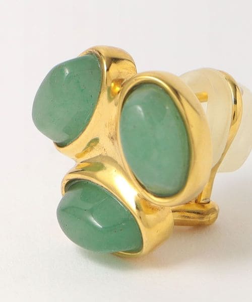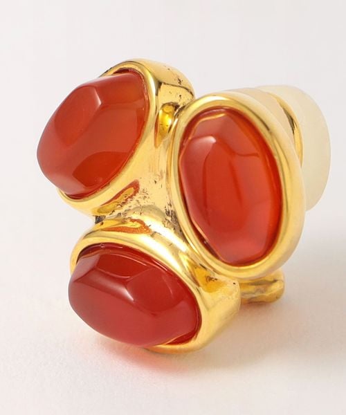 アンティーク調の真鍮のベースに大胆にストーンを3つ配したピアス。