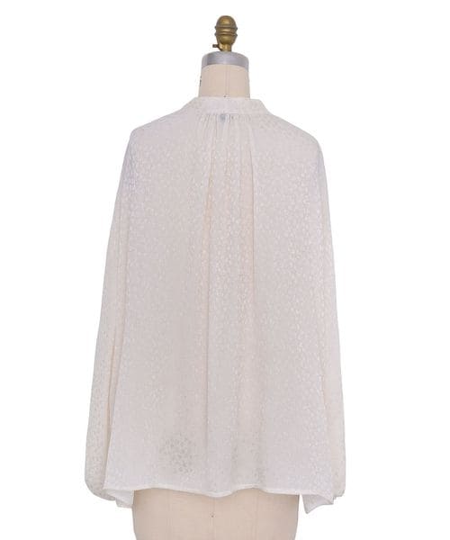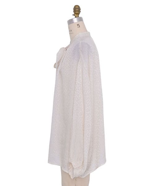 ボウタイリボンを低めの位置にし、抜けた感じに着こなせるようデザインしたブラウス。