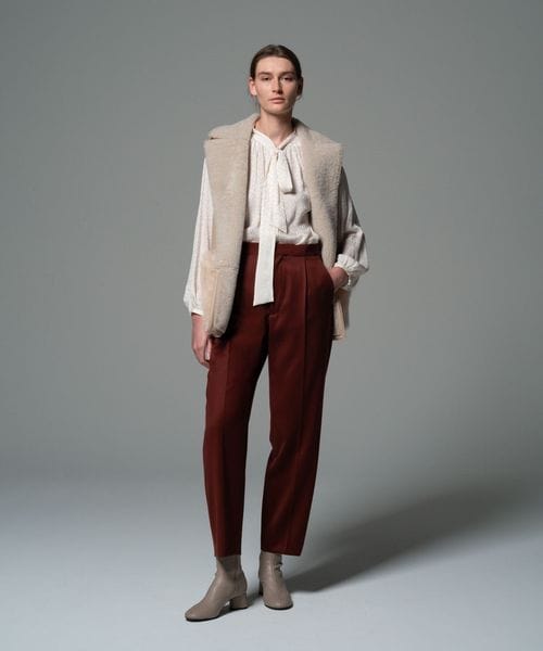 タックを配したエアリーなフォルムは、素材の落ち感も後押しし上品な印象をプラスします。