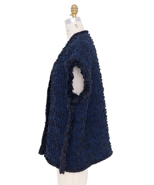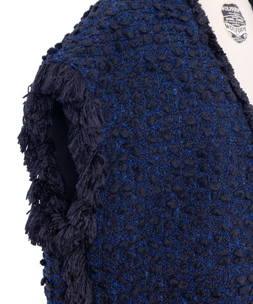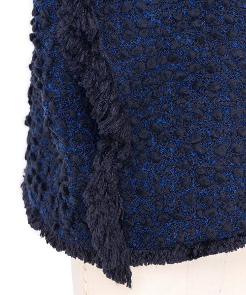 大胆にあしらったフリンジのトリムが優雅に映えるツイードブラウス