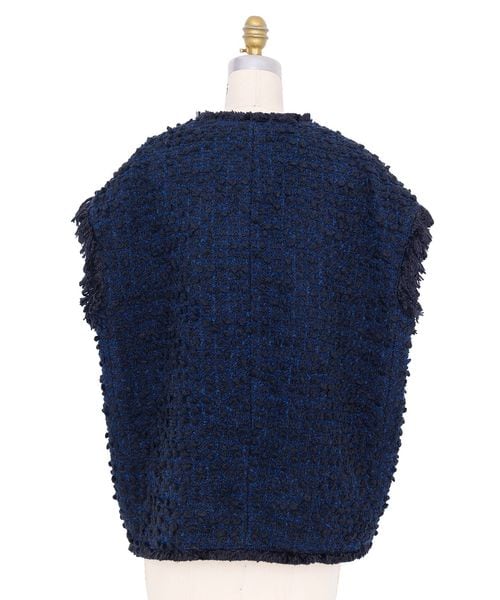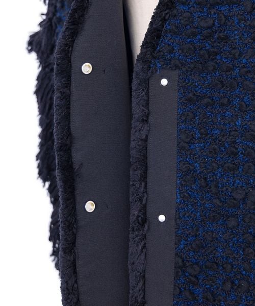 フロントはドットボタン開きの仕様でジレ感覚でスタイリングできるツイードのブラウス。