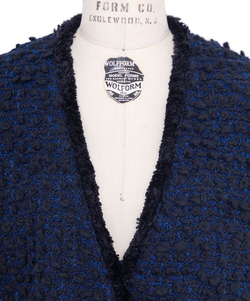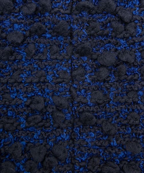 大きなリング糸とブルーとブラックのコントラストが特徴のロービングツイード素材を使用。