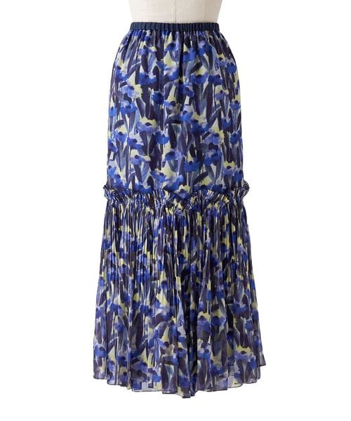 表情豊かなフラワープリントが美しく映えるティアードスカート