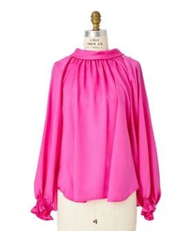 しなやかな素材がつくるドレープと袖口をフリルにしたシャーリングのスリーブが華やかなフォルムに仕上げます。