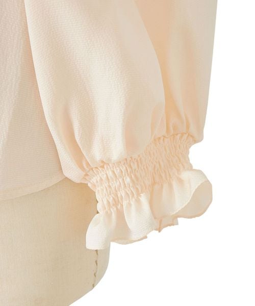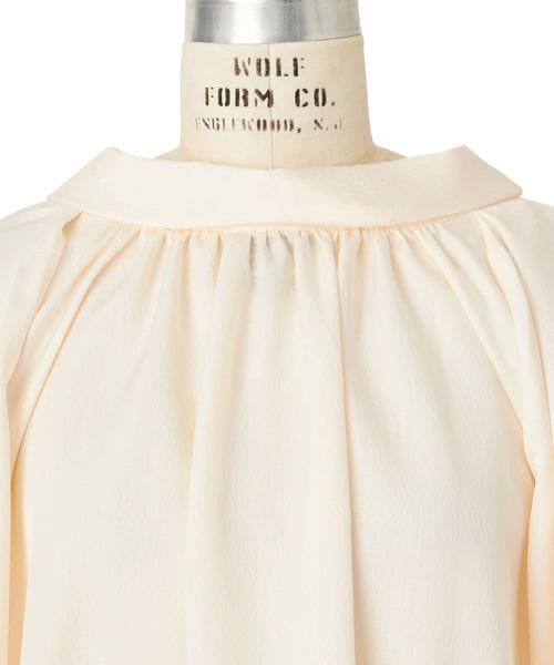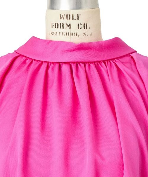 しなやかな素材がつくるドレープと袖口をフリルにしたシャーリングのスリーブが華やかなフォルムに仕上げます。