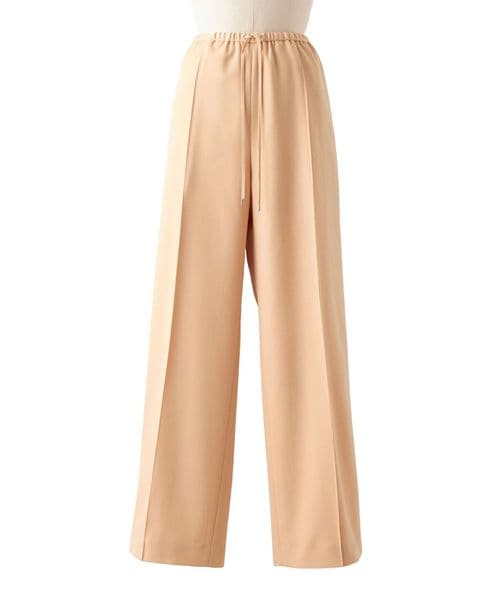 華のあるベージュカラーが印象的なドレッシーなウェストドローパンツ