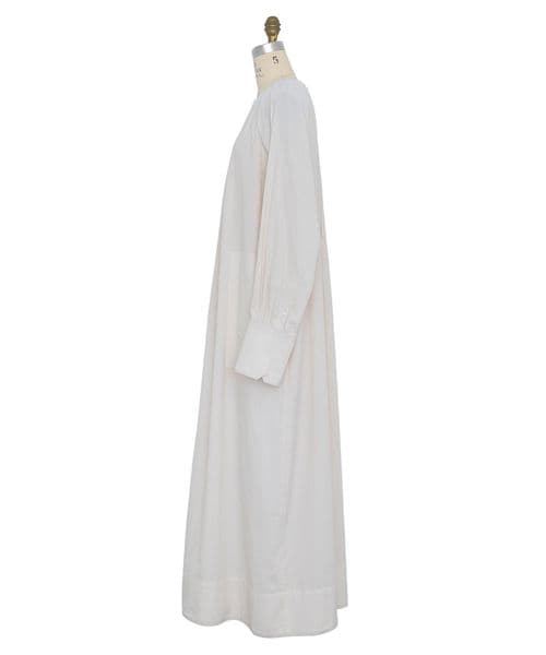 襟元に配した華奢なドローリボンがさりげないポイントになるワンピース。