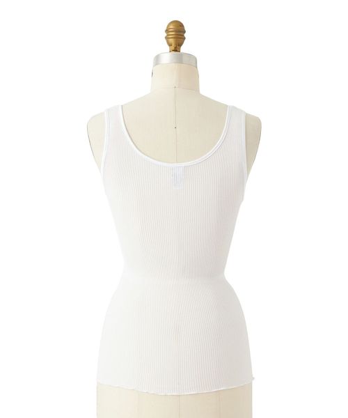 肌なじみのよいコットン素材が定評のタンクトップ。