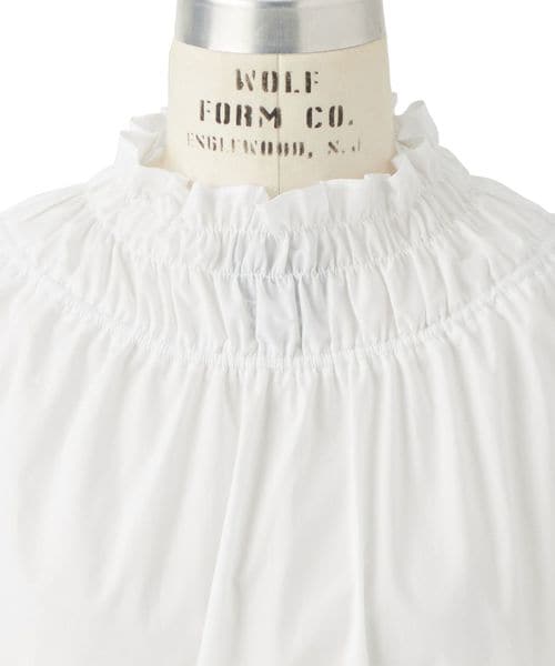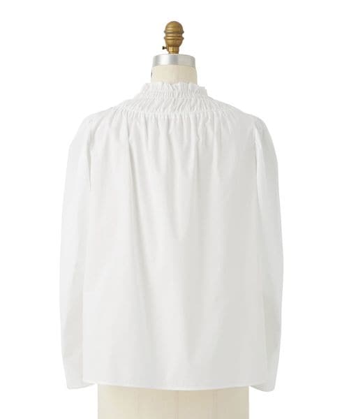 シャーリングネック部分にゴムを入れたプルオーバー仕様のブラウス。