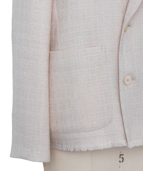 ダブル仕立てのフォーマルな雰囲気と抜け感のあるフォルムが軽やかに映えるツイードジャケット。