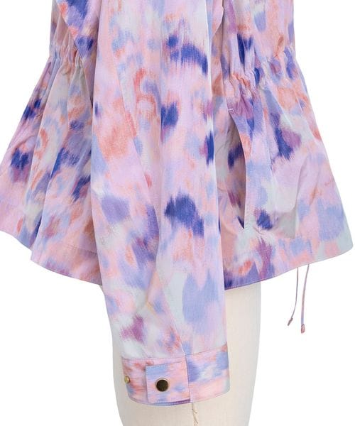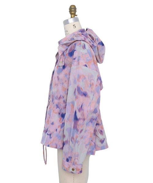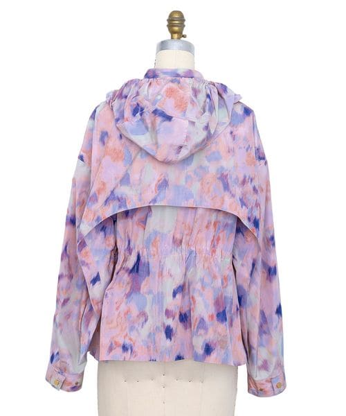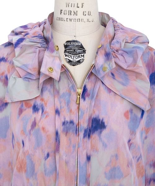 オリジナルのかすりフラワープリントが幻想的なフードジャケット