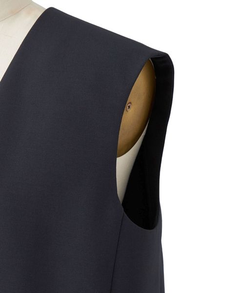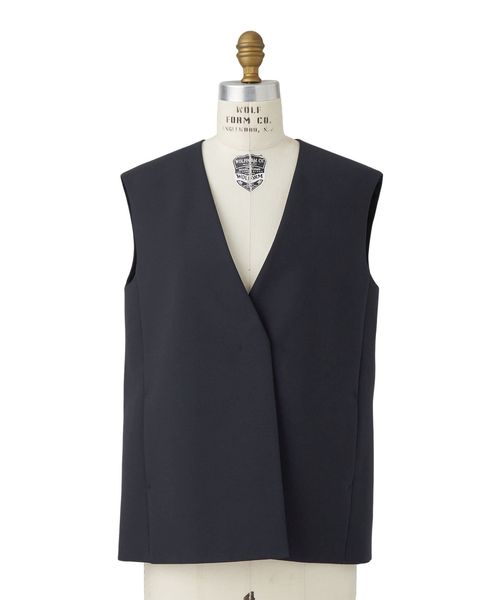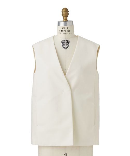 ブラウスからTシャツまで幅広いテイストのインナーを合わせやすいベーシックなジレ。