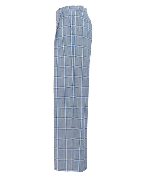 トレンド感あるほどよいワイドシルエットのチェック柄パンツ。