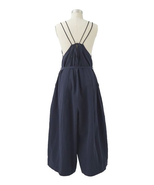 華奢なストラップ使いとエアリーなシルエットのコントラストが印象的なサロペット。