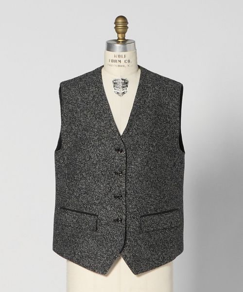 身体のラインを拾いすぎないボクシーなシルエットのウエストコート。