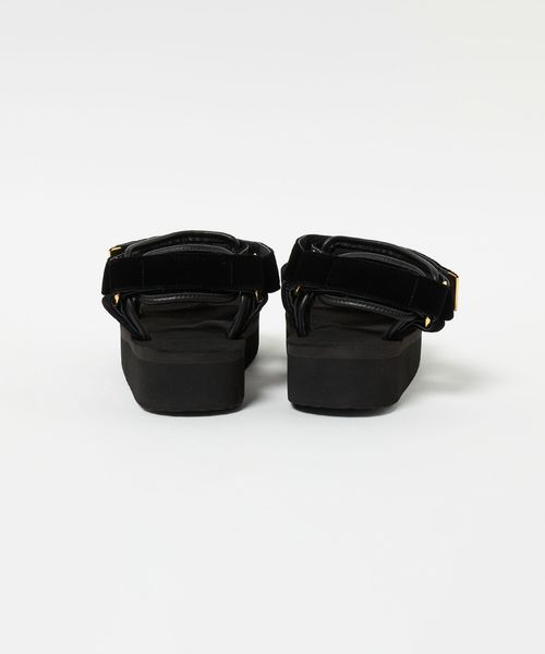 SUICOKEのフラッグシップの1つ『CEL』のプラットフォームモデルをベースに上品なヴェルヴェット素材を使用した別注デザインのサンダル。