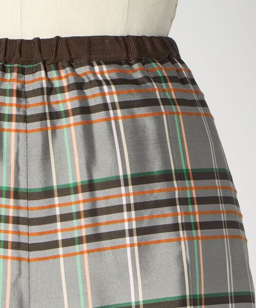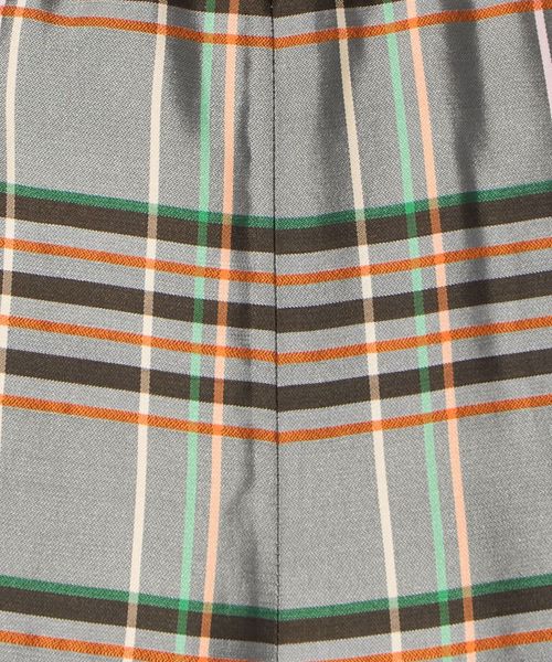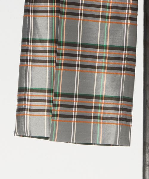 ライトグレーをベースにオレンジ、ピンクなどのアクセントカラーを入れたタータンチェック柄が、トラッドなスタイルに仕上げます。