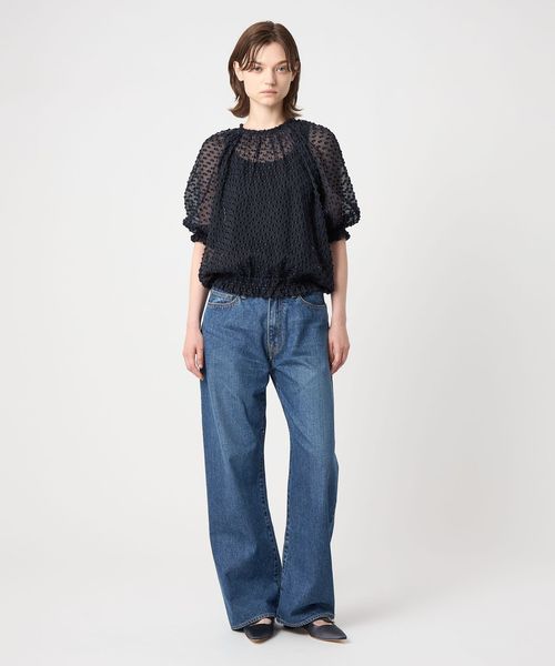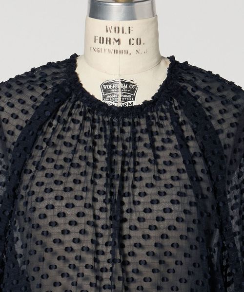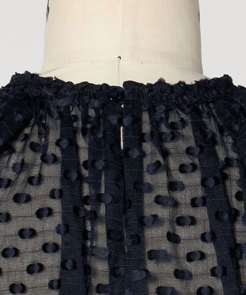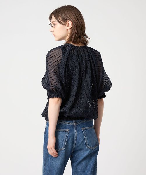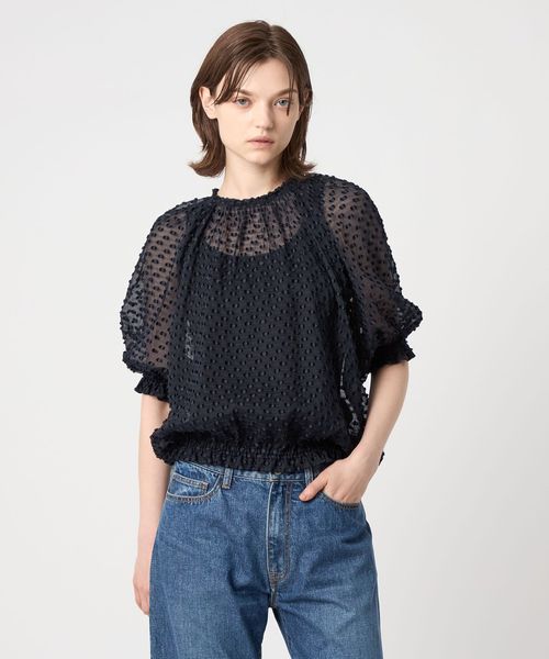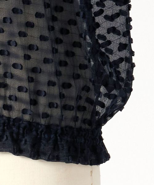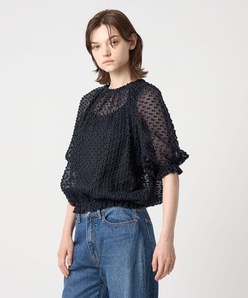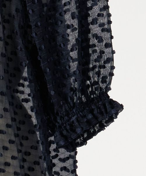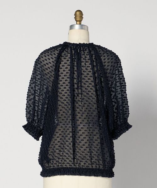 シアーな素材感に立体的なドット柄が華やぐブラウス