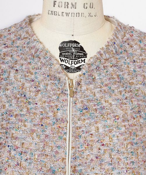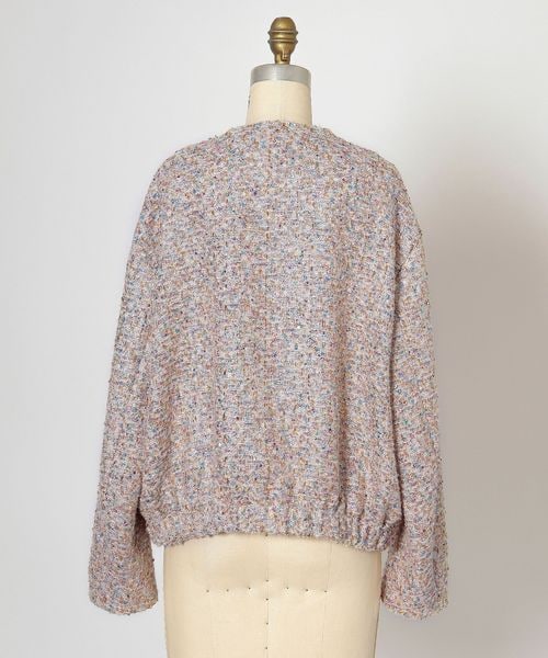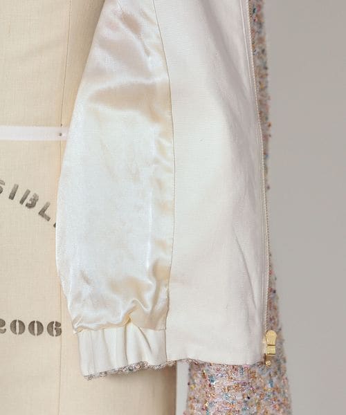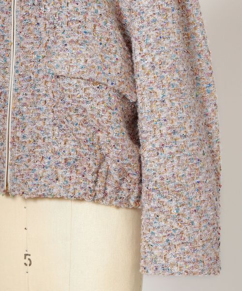 華やかさのあるツイード素材とカジュアルなジップアップデザインのバランス感がよい一着です。