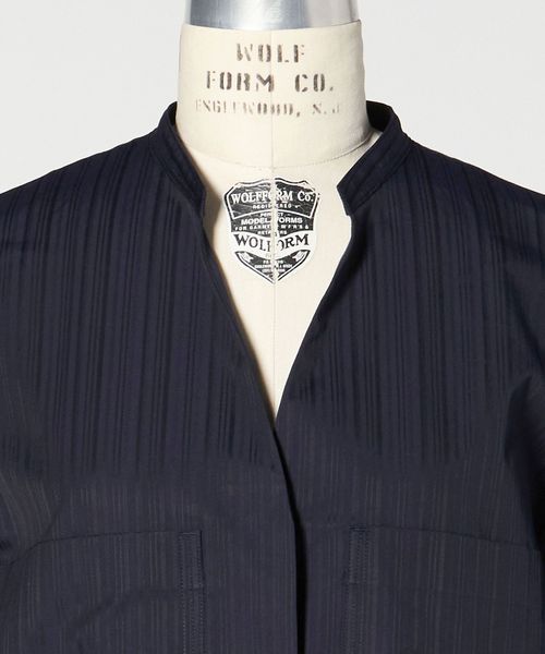 スキッパータイプのスタンドカラーが抜け感を演出するシャツワンピース。
