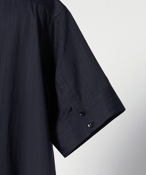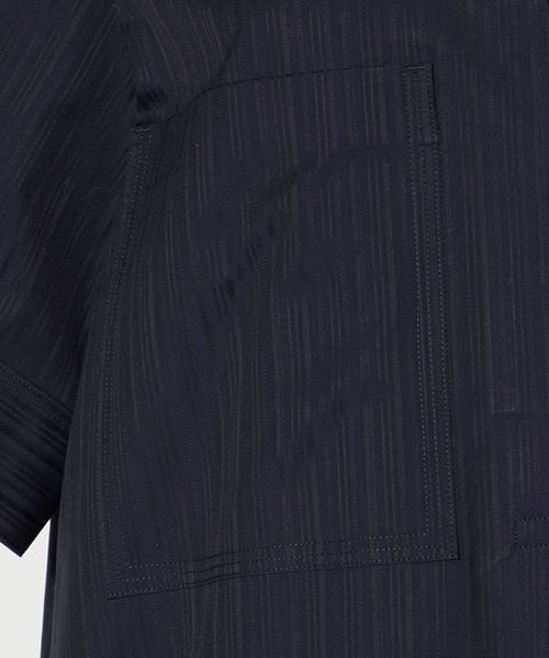 ドビー織り地の光沢感で作ったランダムなストライプがドレッシーな雰囲気に仕上げます。