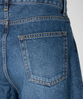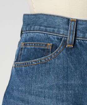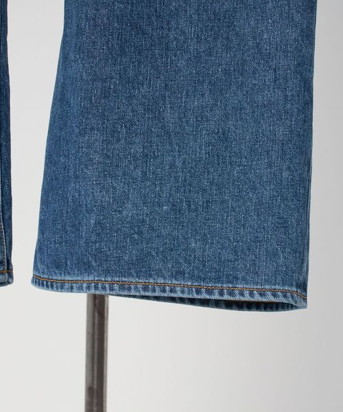 腰回りはすっきりと、レッグをわずかにブーツカットにすることで、美しいラインが生まれるストレートシルエットのデニムパンツ。
