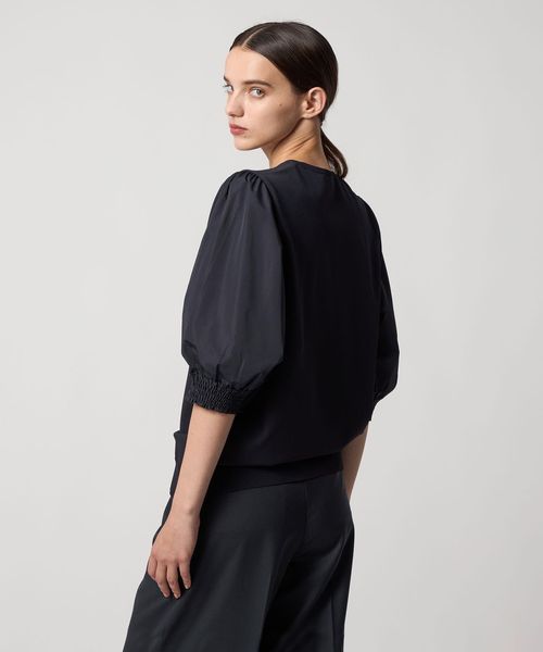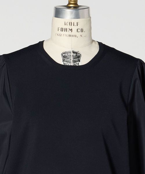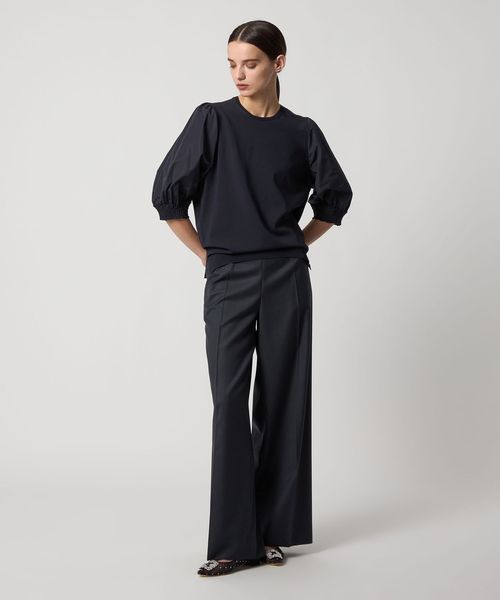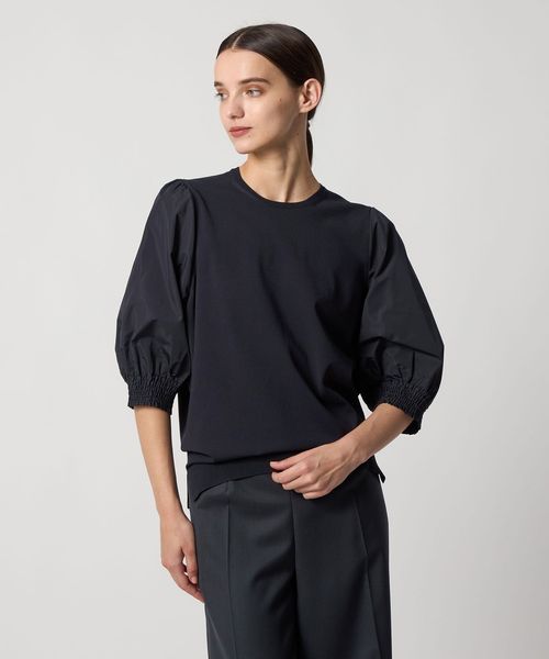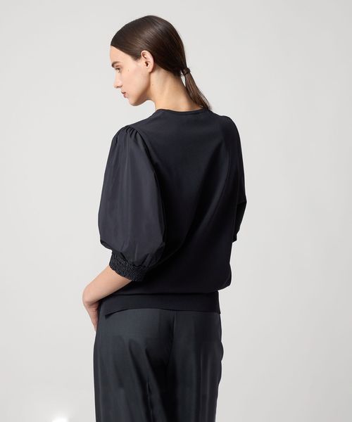 シンプルな身頃にボリュームのある袖デザインが美しく映えるプルオーバーニット。