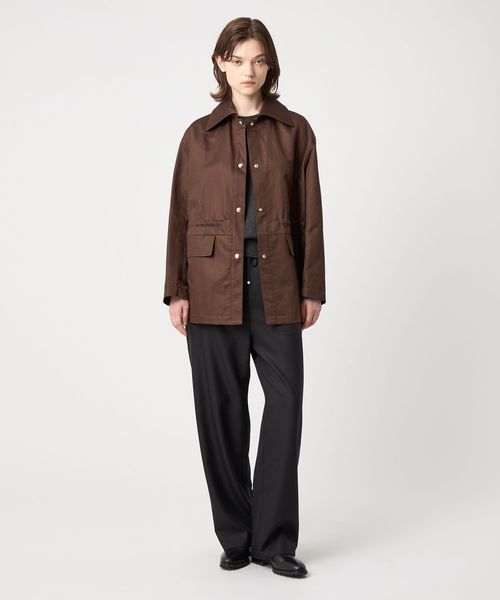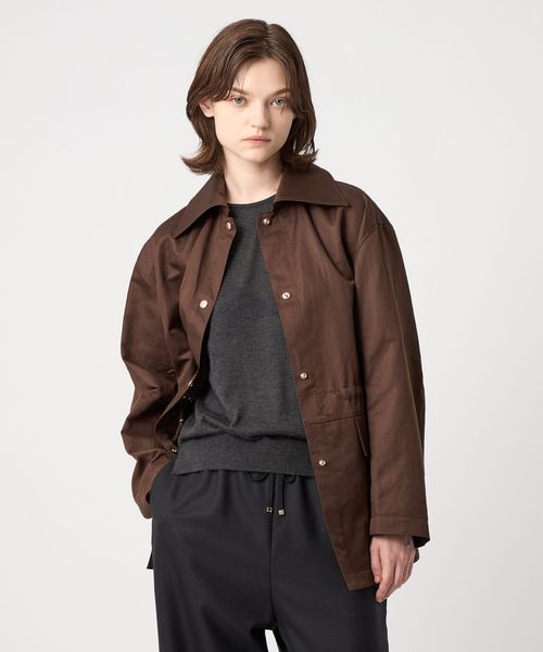 大きめの衿がポイントのボックスシルエットのカバーオール。