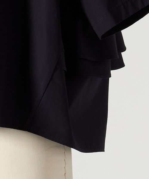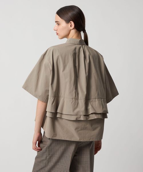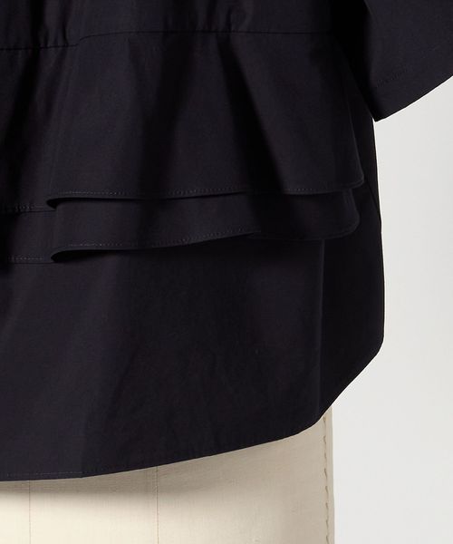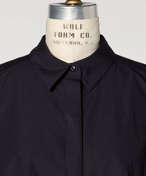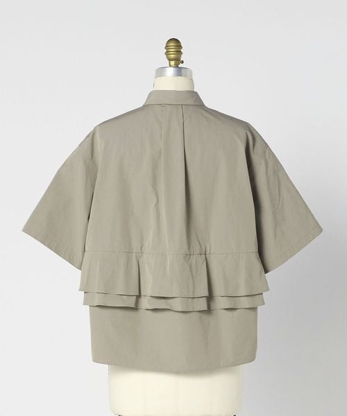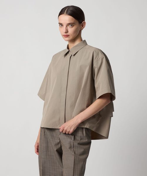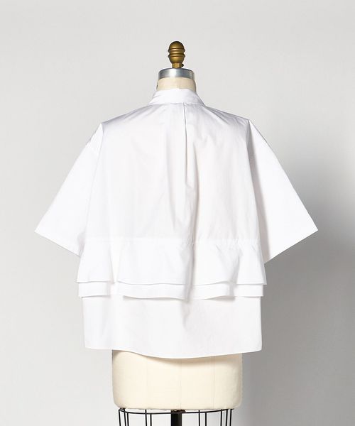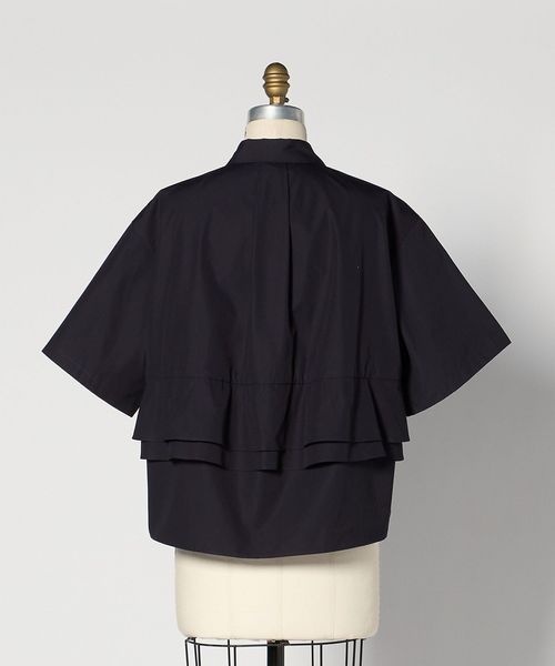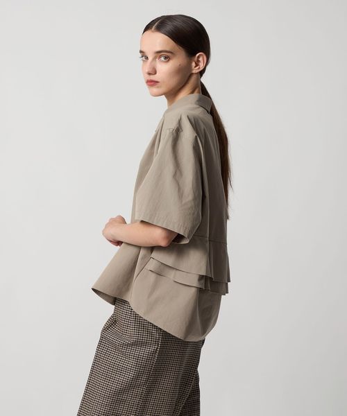 バックのペプラムデザインが新鮮なシャツカラーブラウス。