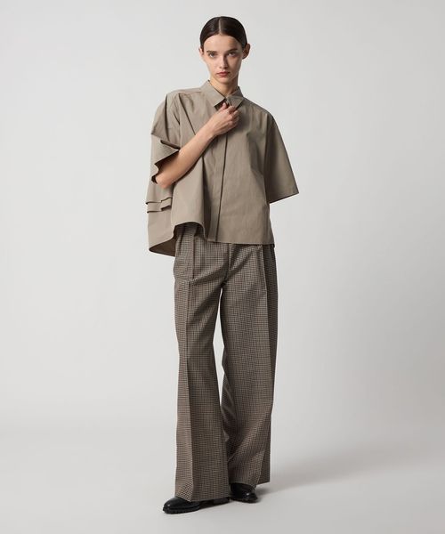 やや小さめの襟は全体をクリーンな印象を、抜け感あるフォルムシルエットが軽やかさをプラスします。