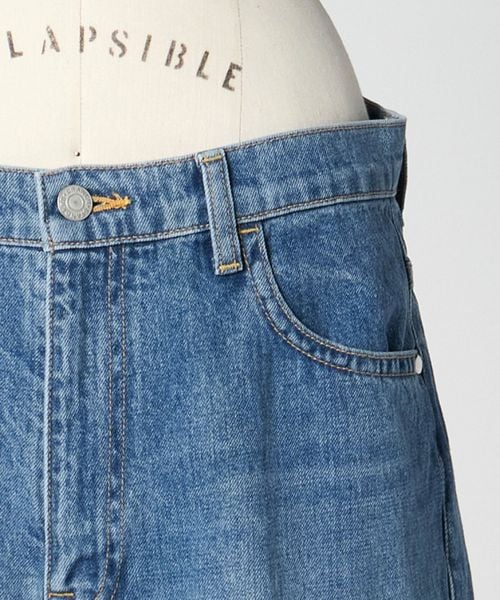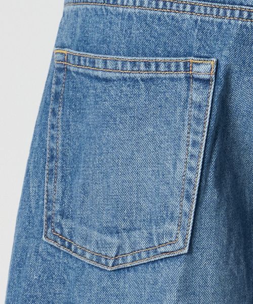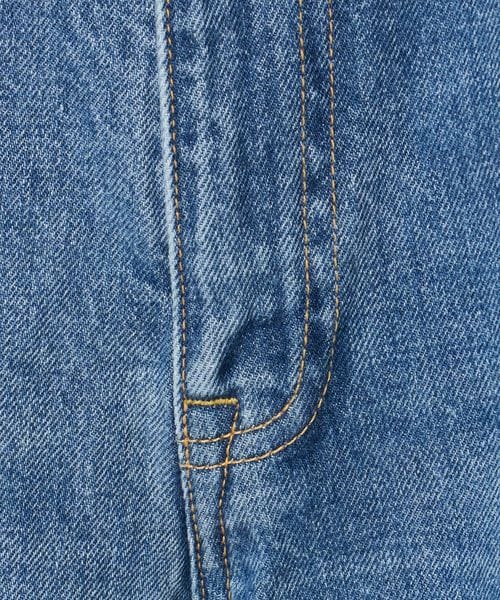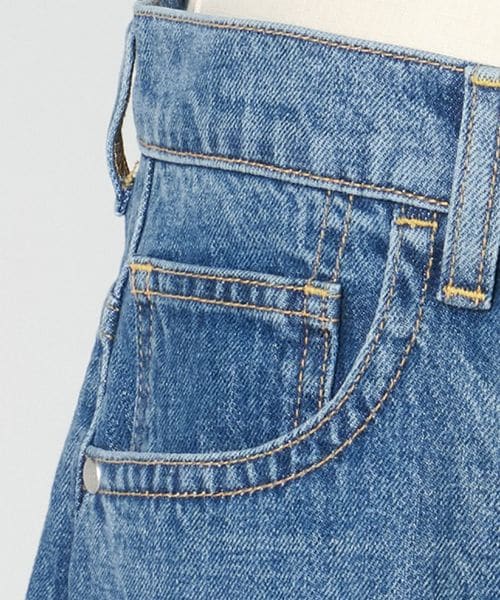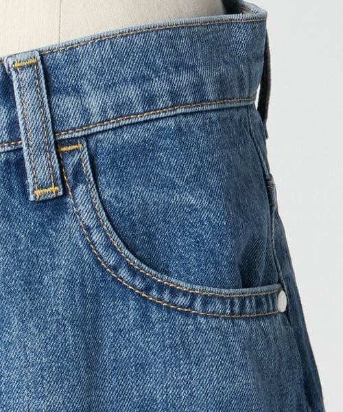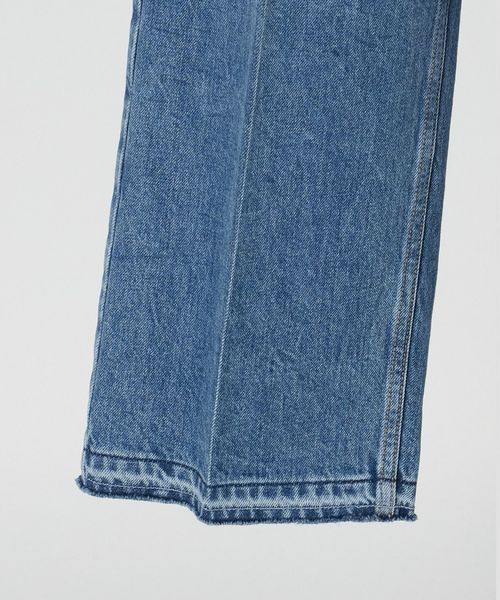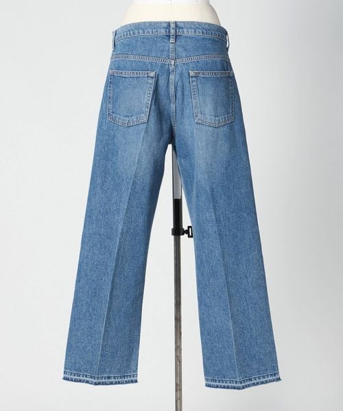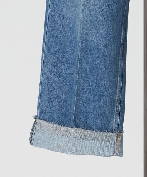 センタープレスを効かせたライトブルーカラーの5ポケットデニムパンツ。