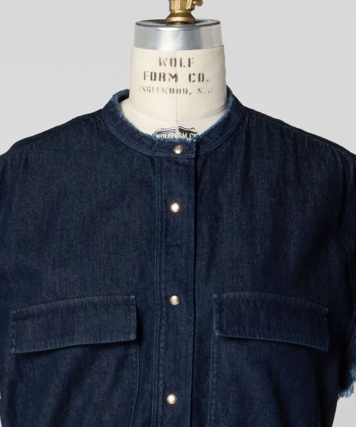 胸下の大きめなポケットやドットボタンがアクセントに。