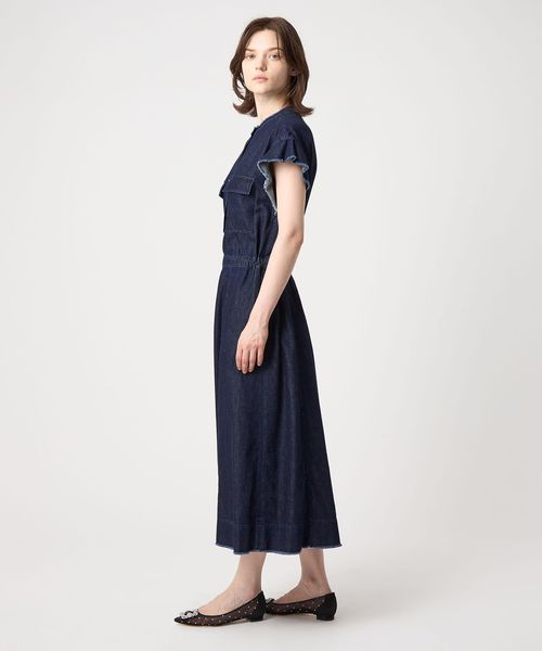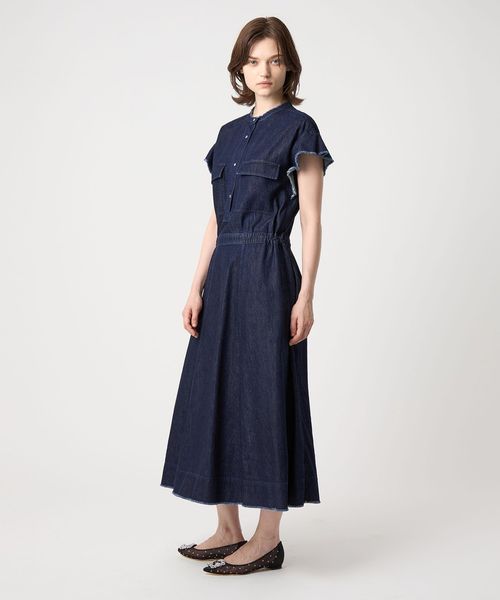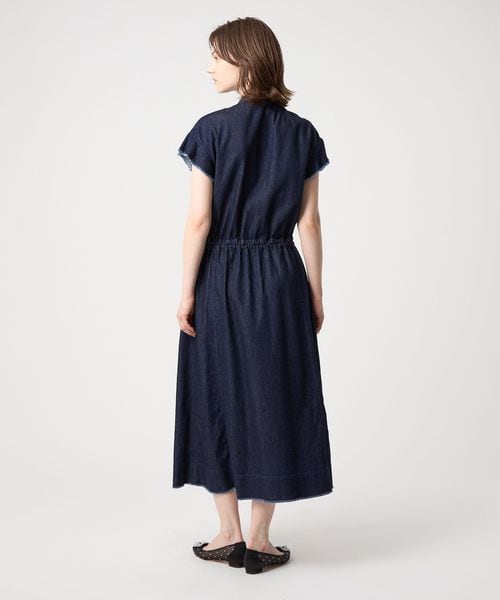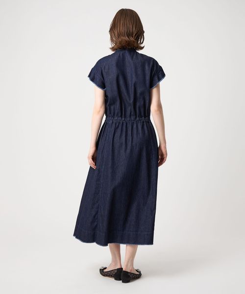 ウェストの脇から後ろにかけてゴムを配しシェイプを効かせたワンピース。