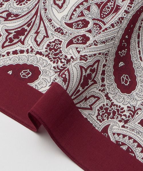 高密度のコットン生地に丁寧に描かれたペイズリー模様が特徴のバンダナ。
