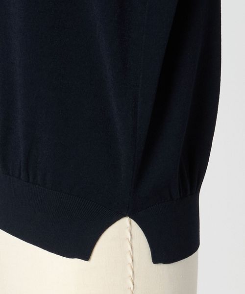 1枚でも着こなせる、やや長めのハーフスリーブ丈がポイントのベーシックデザインのニット。