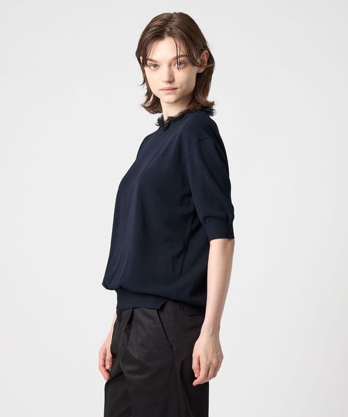 PRE 16Gネックフリルショートスリーブニット