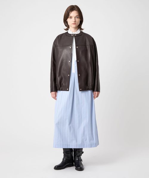 丸みのあるフォルムがやわらかな印象に仕上げるレザージャケット