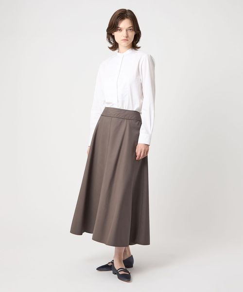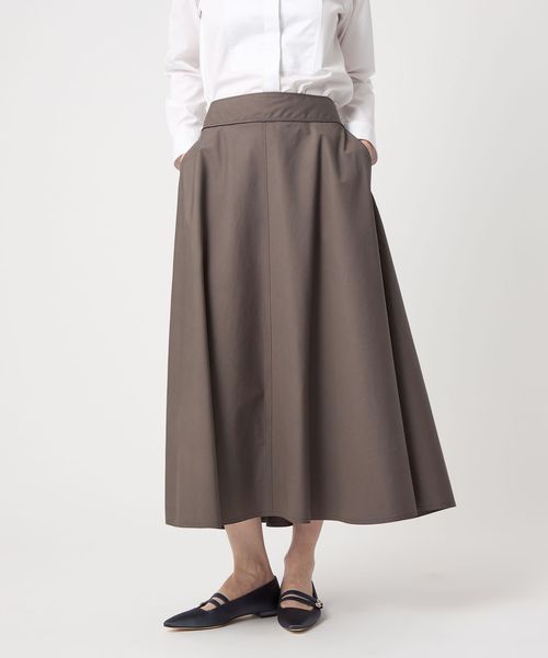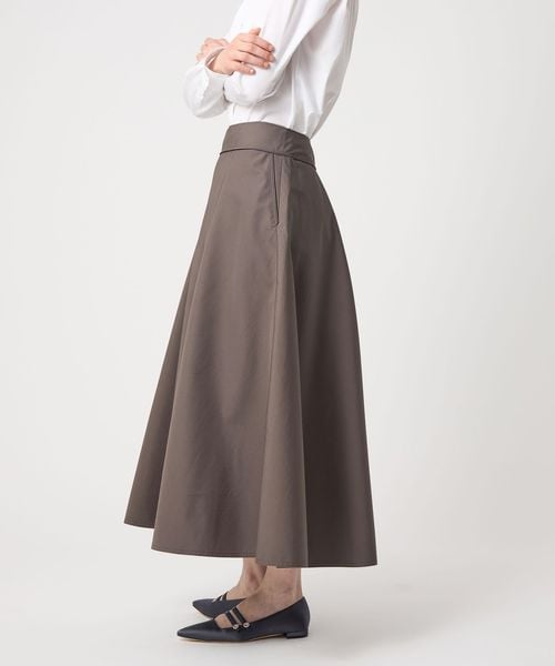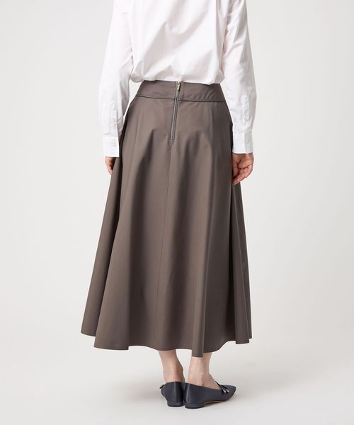 生地の張り感を活かしてつくったフレアシルエットが魅力のスカート。